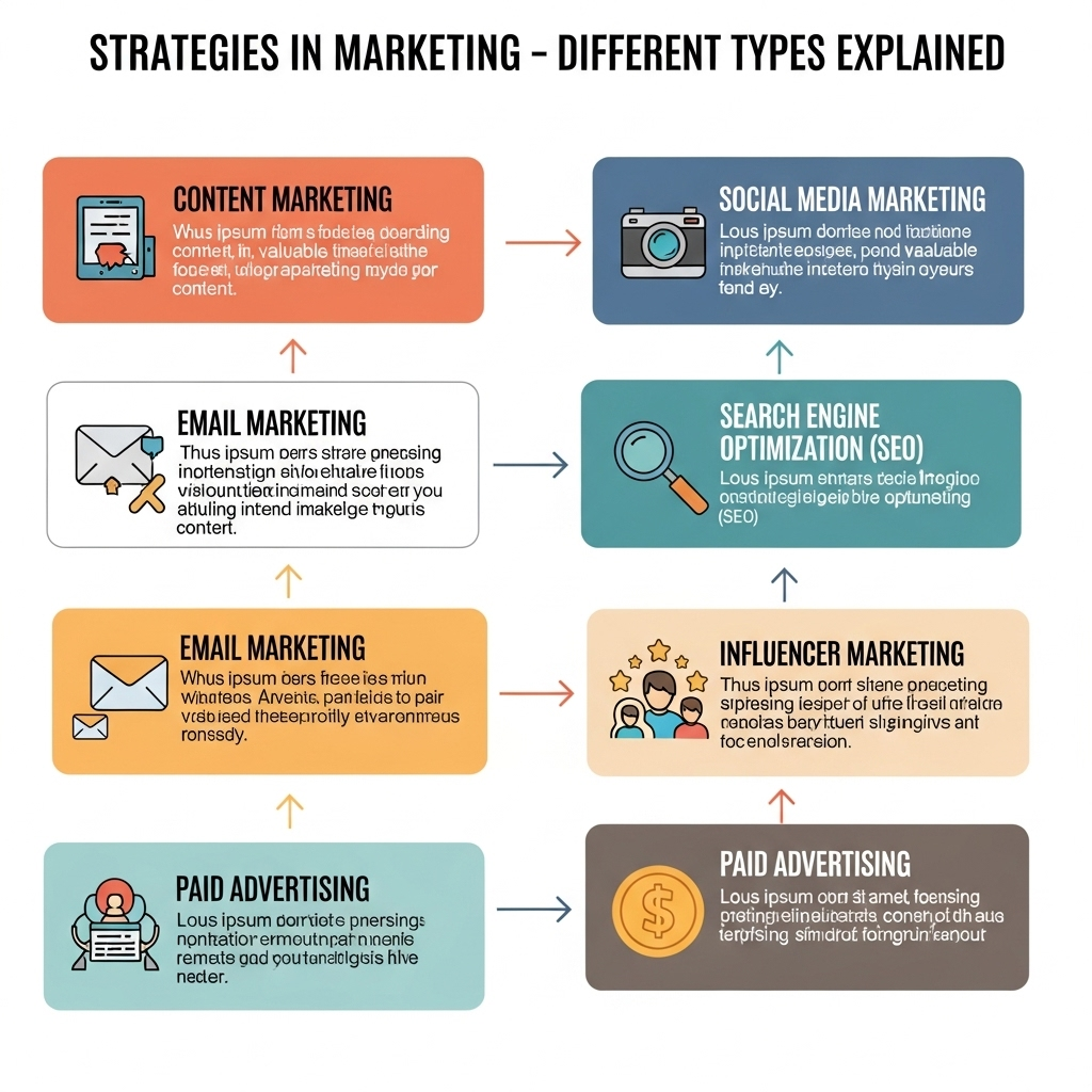 Each strategy in marketing plays a different role, but they all connect. Here’s how: